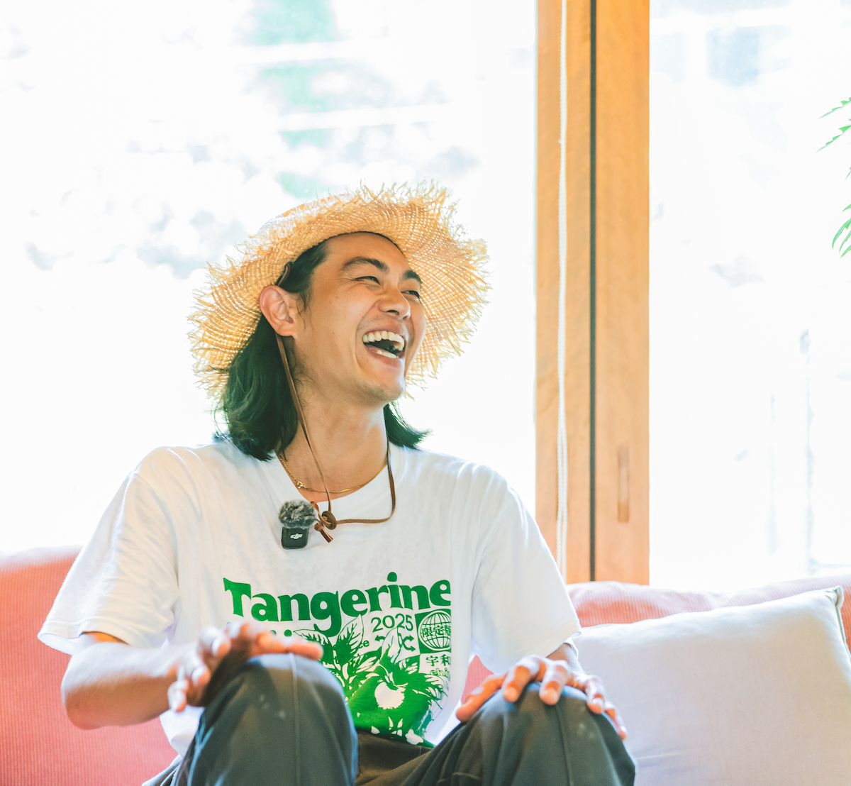 宇和島市吉田町で代々みかん農家を営む7代目、若松優一朗さん。家業を継ぐだけでなく、自社のブランド〈Tangerine〉を立ち上げ、ジュースやアパレル商品を展開しています。
